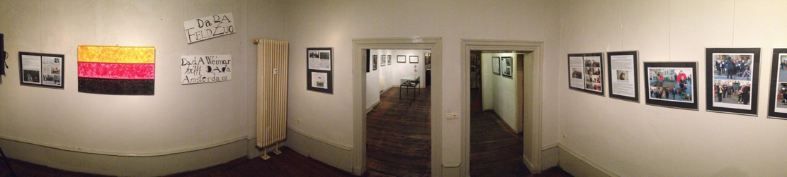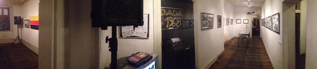 Die von Axel Görmar gestaltete Ausstellung erstreckt sich über vier Räume, informiert auf Texttafeln über die Historie seit 1916 und Weimarer Dada-Aktivitäten ab 1980, zeigt Originale von Mary Bauermeister und Adam Noack, sechs Filme, sieben Zeitungsartikel, 12 Plakate, 132 Fotos und eine Vitrine mit 13 originellen Artefakten, wie z. B. die Fußpuder-Streubüchse von Kurt Schwitters, eine Seifenschale von Hannah Höch oder Handschuhe von Nelly van Doesburg.
